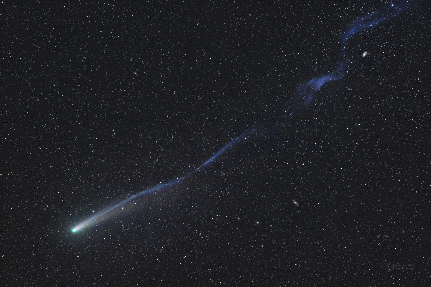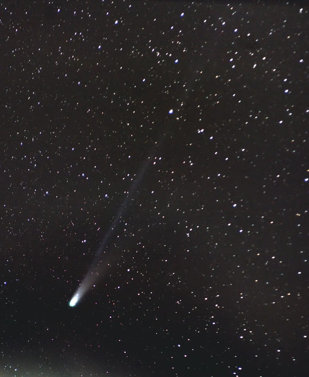 Kométa 13. 10. 2025 na hranici súhvezdí Veľkej medvedice a Poľovných psov, jej chvost (>12°) dosahuje takmer k Veľkému vozu, foto P. Horálek