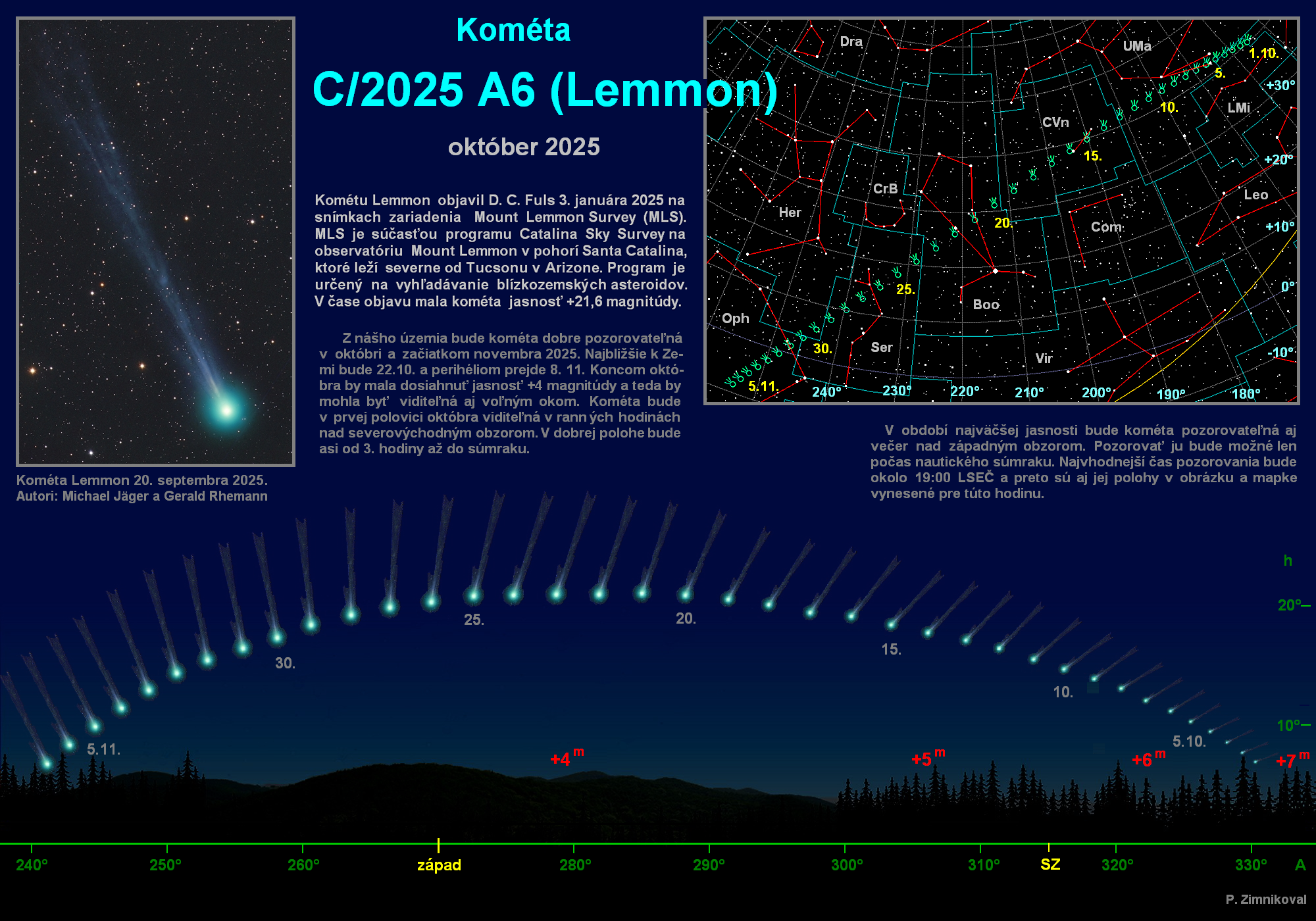 Veľmi pekný poster k tejto kométe urobil P. Zimnikoval, odporúčame rozkliknúť (otvoriť na novej karte), a prípadne aj vytlačiť :-)
