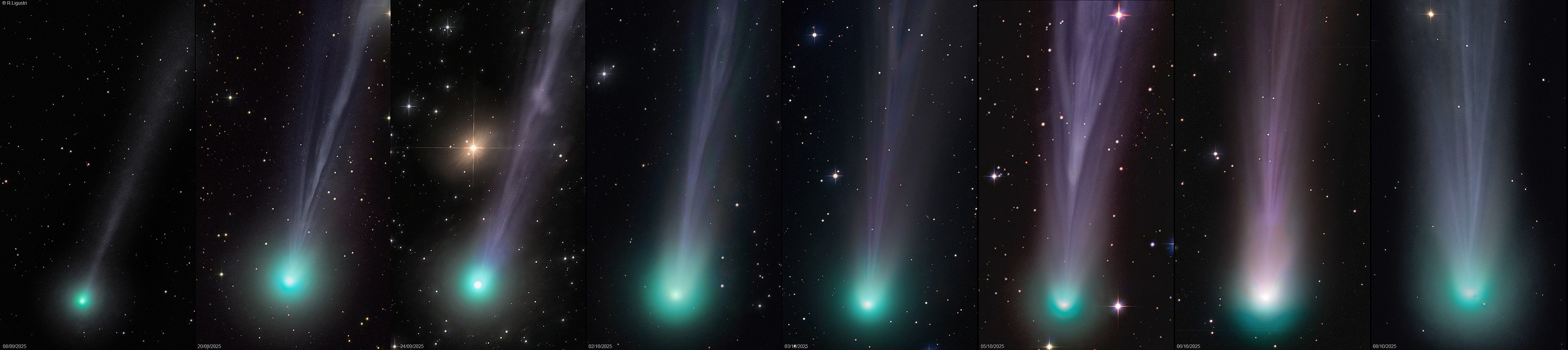 Zmena vzhľadu kométy od 8. 9. – 8. 10.2025 Rolando Ligustri (https://www.facebook.com/astrottica)