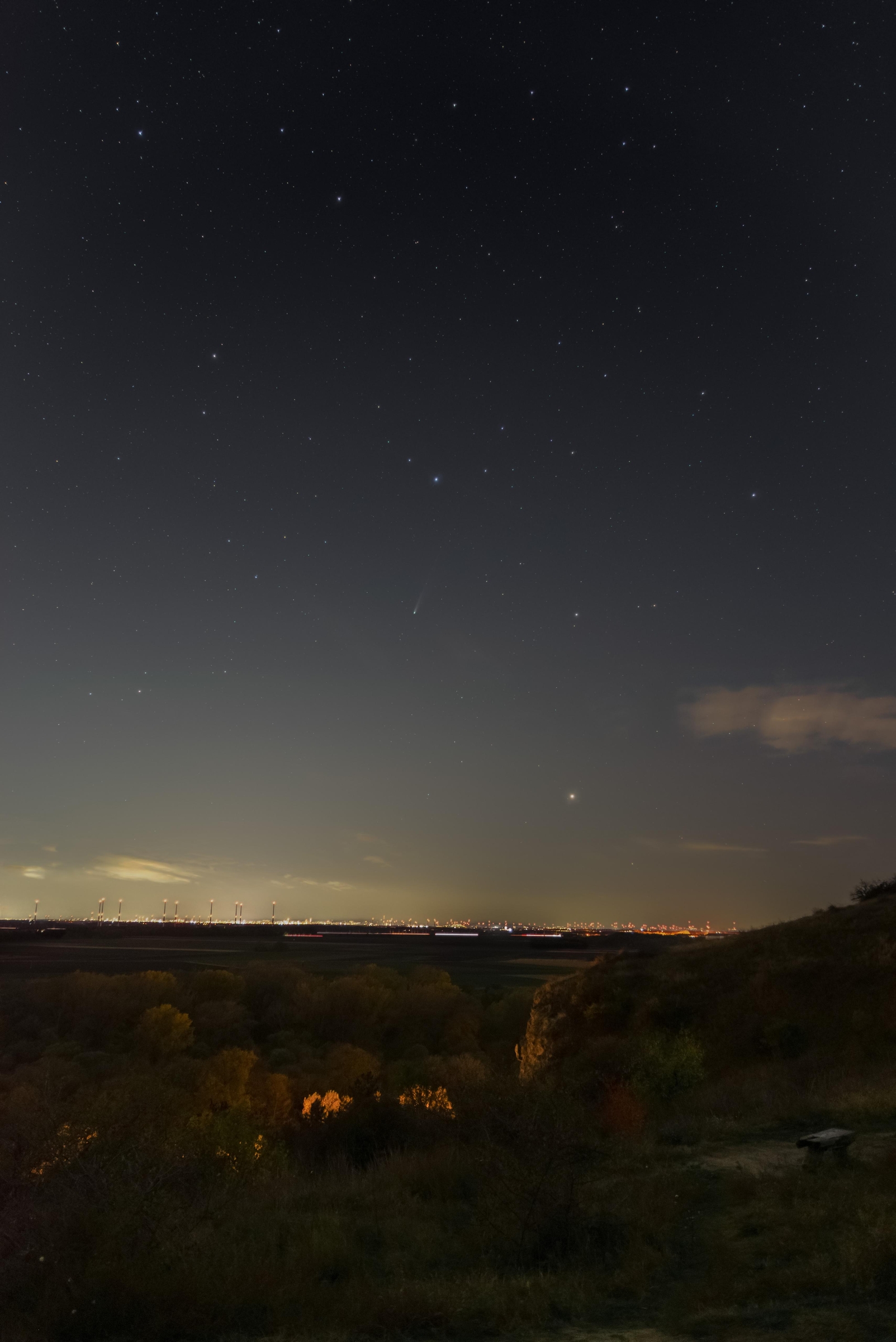 Aj keď podmienky neboli ideálne, je z toho predsa len pekná kométa :-).