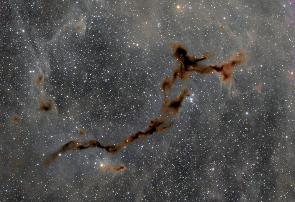 Dominantou snímku je tmavá mlhovina Barnard 150, nazývaná též „Mořský koník“. Své jméno odvozuje od tvaru tmavé siluety na jasném hvězdném a plynném pozadí. Označení pak získala z astronomického katalogu tmavých mlhovin, sestaveného v roce 1919 americkým astronomem Edwardem Emersonem Barnardem. V originále se jmenuje „Barnard Catalogue of Dark Markings in the Sky“. Jeho verze z roku 1919 obsahuje 182 mlhovin, posmrtně vydaná verze z roku 1927 má již 369 položek.