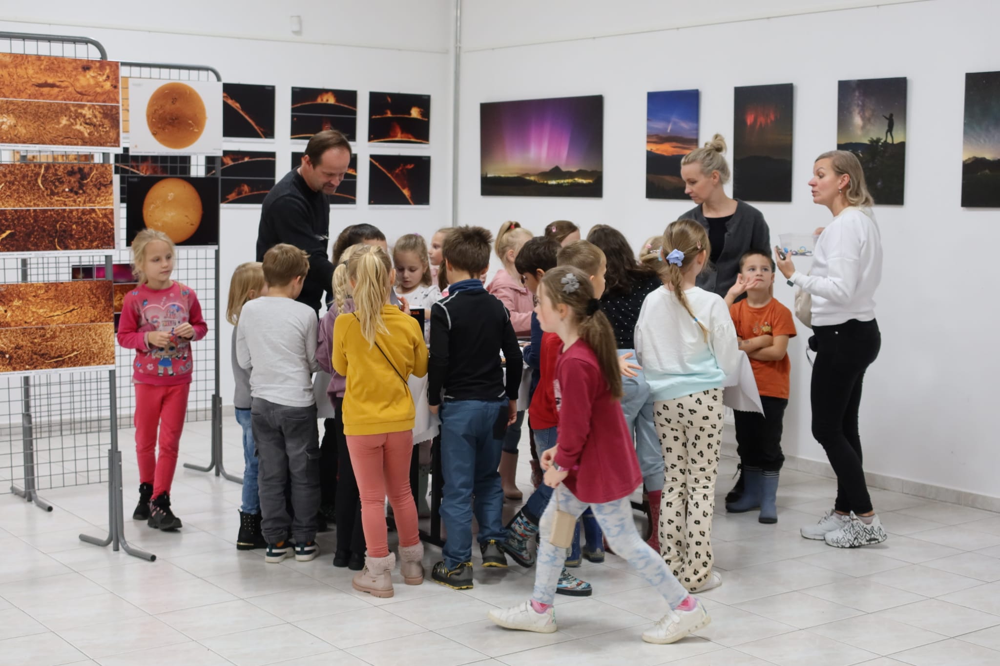 A zvlášť deťom sa páčili nielen fotografie, ale mohli si odniesť na pamiatku aj malé vesmírne suveníry – fotomagnetky, či autorský kalendár Ondreja Králika z jeho potuliek nočnou oblohou.