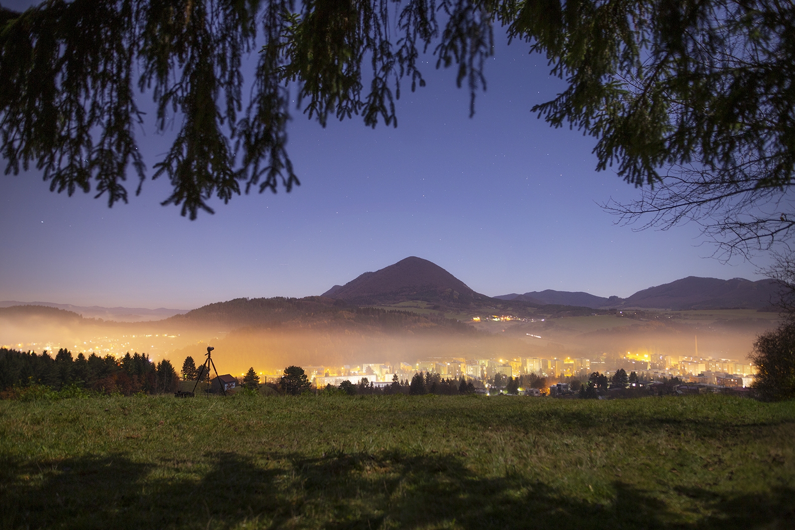 Na fotografii je statív s fotoaparátom, no svetlá v údolí fotografa iste nepotešili. Hmla v údolí zvýraznila nevhodné osvetlenie mesta. Tam dole ľudia krásu hviezdnej oblohy iste nepoznajú, sú pod „svetelnou čapicou“ ku ktorej neprispieva len verejné osvetlenie, ktoré svieti vysoko nad obzor, no aj samotní obyvatelia. Nielenže paneláky sú osvetlené až po najvyššie poschodia ale je vidieť svetlá z bytov aj na tých najvyšších poschodiach.