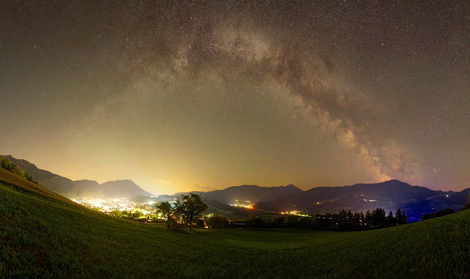 Na snímku jsem se snažil zachytit město Gröbming ve Štýrsku (Rakousko). Největším překvapením pro mě bylo světlo namířené na místní kostel, které ale svítilo přímo na oblohu (na fotce uprostřed mezi dvěma stromy). Veřejné osvětlení z menších vesnic o půlnoci z velké části zhaslo, ve městě jsem si ničeho takového nevšiml. Mléčnou dráhu jsem očima vůbec neviděl; na fotce vynikla asi jen z důvodu, že v širším okolí jsou hory bez velkých zdrojů světelného znečištění.