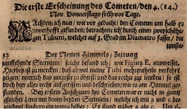 Kirch, G.: Der Neuen Himmels-Zeitung. Lipsko, 1681.(Nové nebeské noviny strana 31/32).