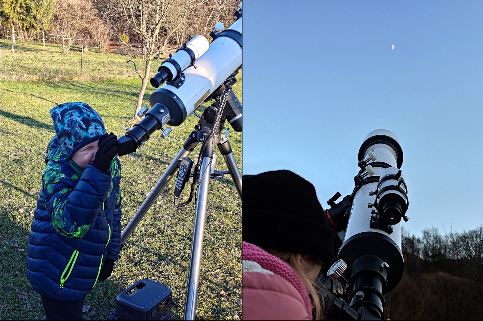 Amatérski astronómovia z Humenného boli súčasťou zimného festivalu „Ozveny koledy“ v obci Uličské Krivé, ktorý sa konal v sobotu 27. decembra 2025 na dvore „Guzinkovej chyže“. Na festivale zazneli tradičné rusínske koledy, vystúpenie „betlehemcov“ a krstilo sa nové CD „Polonyna - Christos raždajetsja!“. Do tohto bohatého kultúrneho programu prispela naša miestna organizácia teleskopickým pozorovaním. Po týždňoch zamračenej oblohy nám počasie doprialo pozorovanie dostupných astronomických objektov. Na jasnej oblohe dominoval Mesiac v prvej štvrti - v ideálnej fáze na pozorovanie. Účastníci kultúrneho podujatia si mali možnosť pozrieť detaily členitého mesačného povrchu – predovšetkým kráterov (Aristoteles, Eudoxus a trojicu Ptolemaeus, Alphonsus, Arzachel) a pohorí na rozhraní osvetlenej a neosvetlenej časti povrchu (mesačné Apeniny a Kaukaz). Pozorovací program pripravili a viedli členovia miestnej organizácie Róbert Adam, Pavol A. Dubovský a Štefan Gojdič, použitá technika: Bresser 127/1200 mm, montáž SkyWatcher HEQ5, okuláre Bresser 25 mm a Celestron 10 mm.