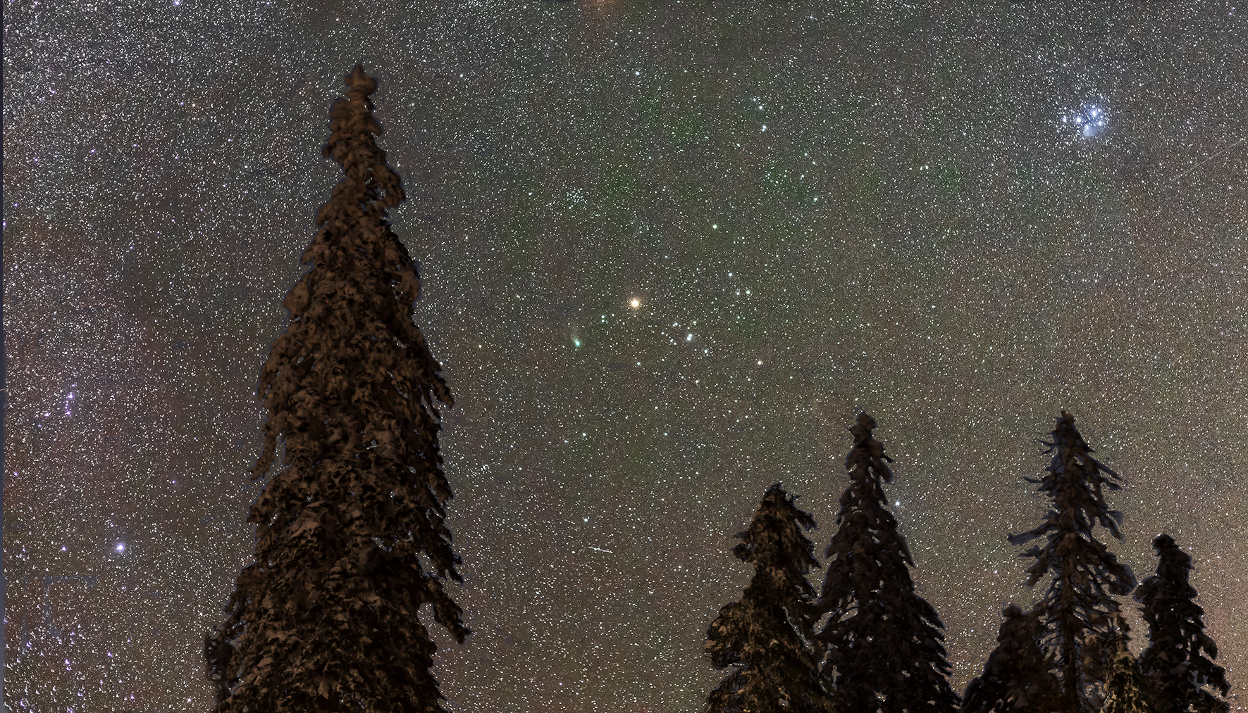 Statné zasnežené smreky a sedem sestier zoskupenia Plejády boli v mrazivú noc nemými svedkami môjho stretnutia s vlasaticou.