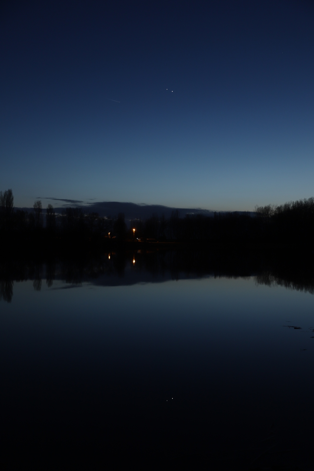 1.3.2023, konjunkcia aj s odrazom vo vode, Komárno - Mŕtve rameno Váhu (foto P. Rapavý)