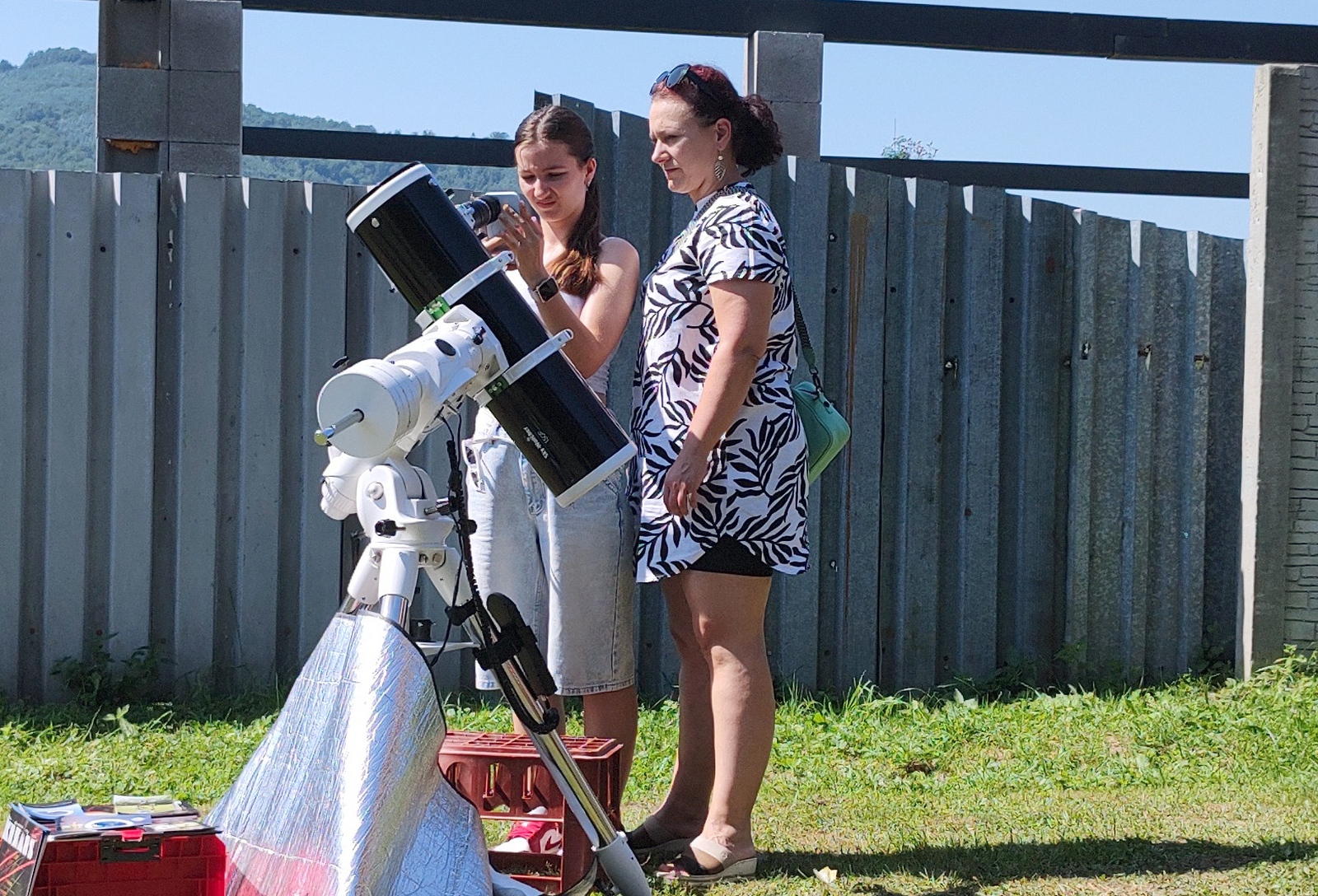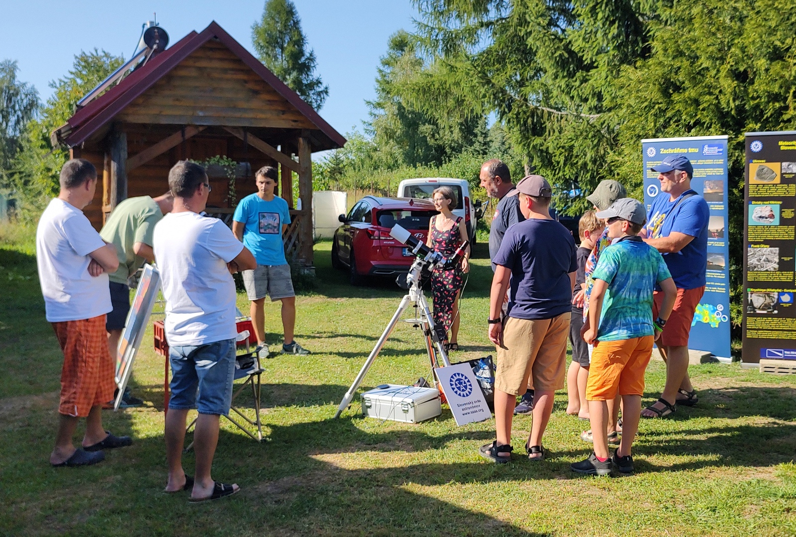 „Základný tábor“ sme mali už tradične v Krčme u Mirka, keďže na pozorovanie počas dňa nie je potrebné mať dokonalý výhľad. Nuž a malo to výhodu, že záujemcom sme boli k dispozícii od rána až takmer do západu Slnka a pri mimoriadne vysokých teplotách sa bolo možné aspoň osviežiť či oddýchnuť v tieni. Fotosféra síce neoplývala veľkými škvrnami, no chromosféra zaujala množstvom výrazných filamentov a viacerými protuberanciami. Ako bonus bolo možné aj počas dňa vidieť Venušu či Jupiter, no ten pre verejnosť veru zaujímavým nebol.