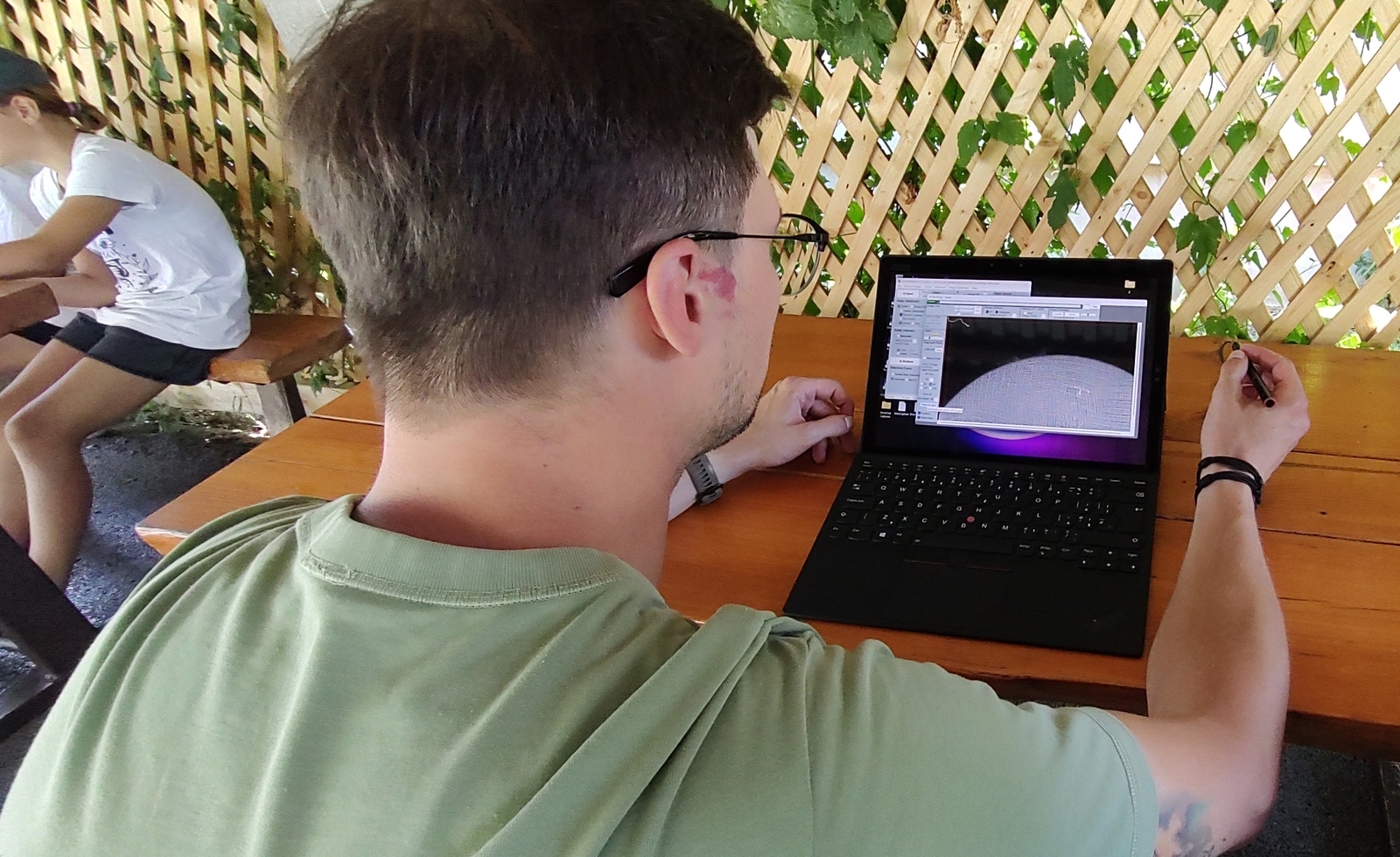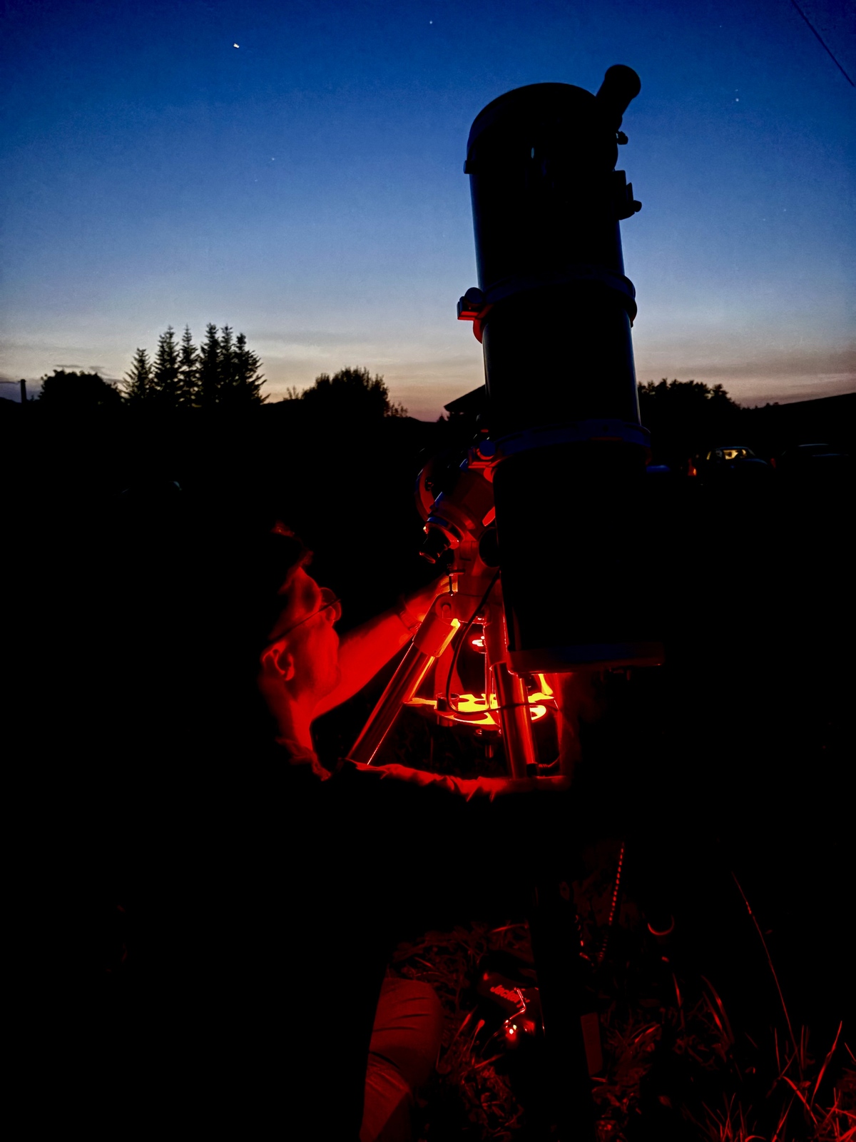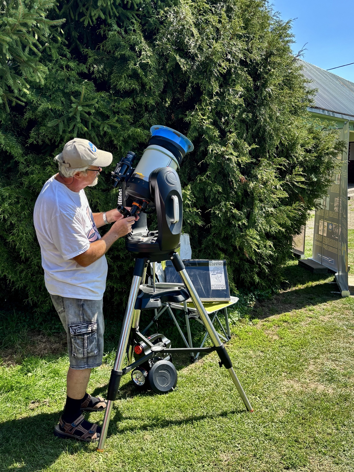 Matúšova zodpovedná príprava na pozorovanie. Nuž a tá bola ešte pred oficiálnou akciou, bratislavská skupina prišla do Runiny už skôr a venovala sa astrofotografii.