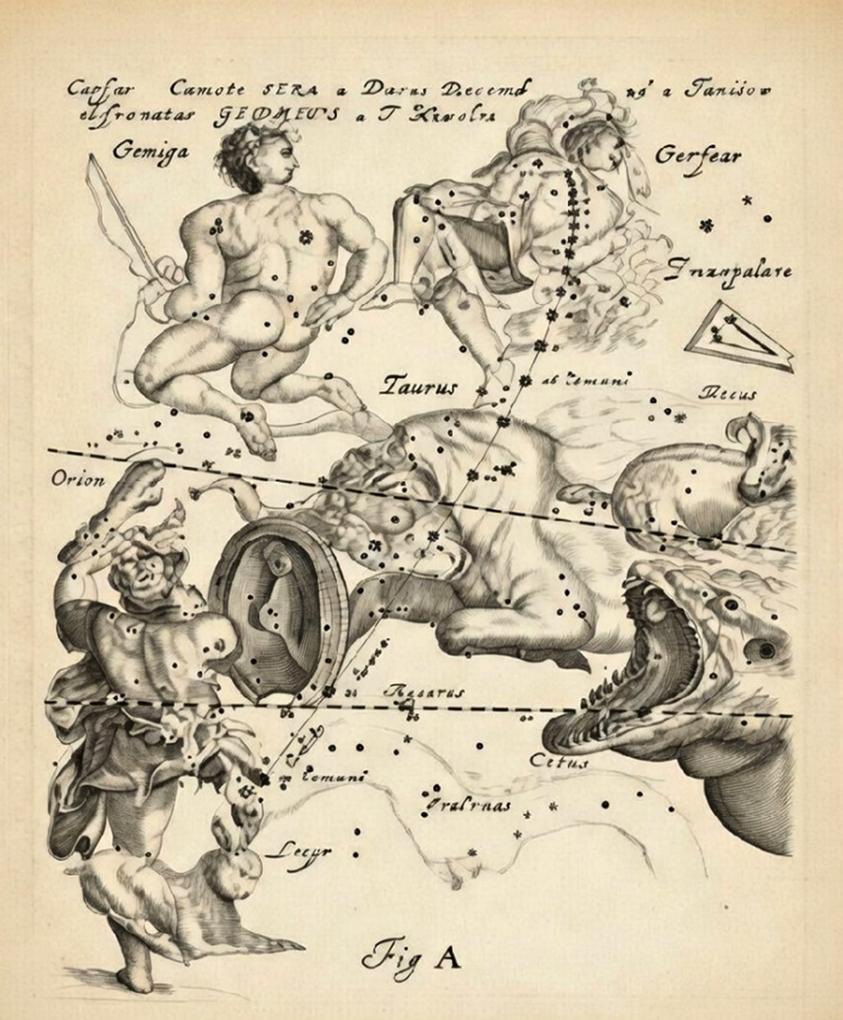Rytina zachytáva zdanlivú dráhu kométy C/1664 W1 podľa pozorovaní v Gdansku od 14. decembra 1664 do 18. februára 1665. Toto zobrazenie podporuje výklad, že januárový zápis v Hainovej kronike sa vzťahuje na pokračujúce pozorovanie tej istej kométy a nie na nový úkaz.