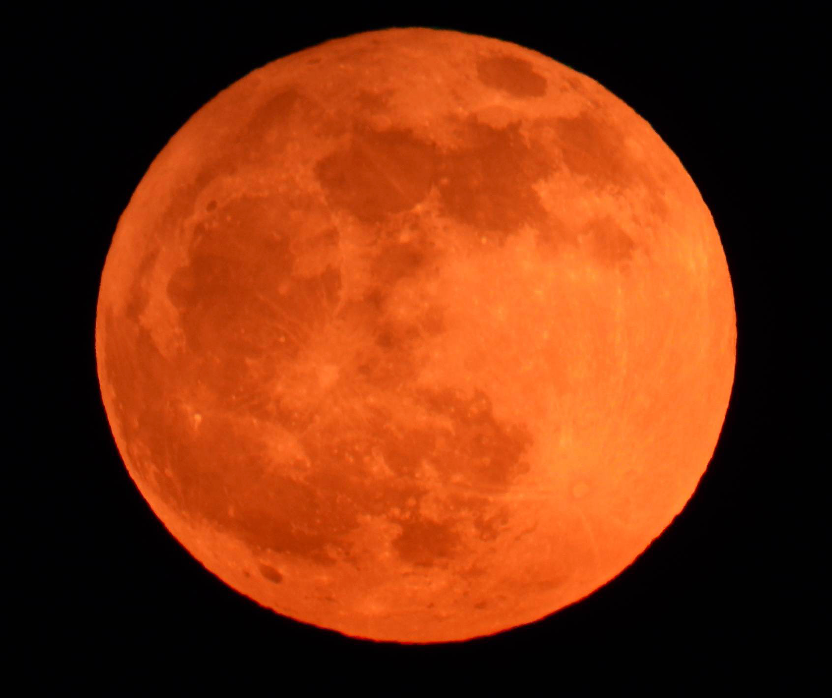 Mesiac je v ešte v polotieni a farebne pripomína oranžový dulovec (Dulovec japonský,