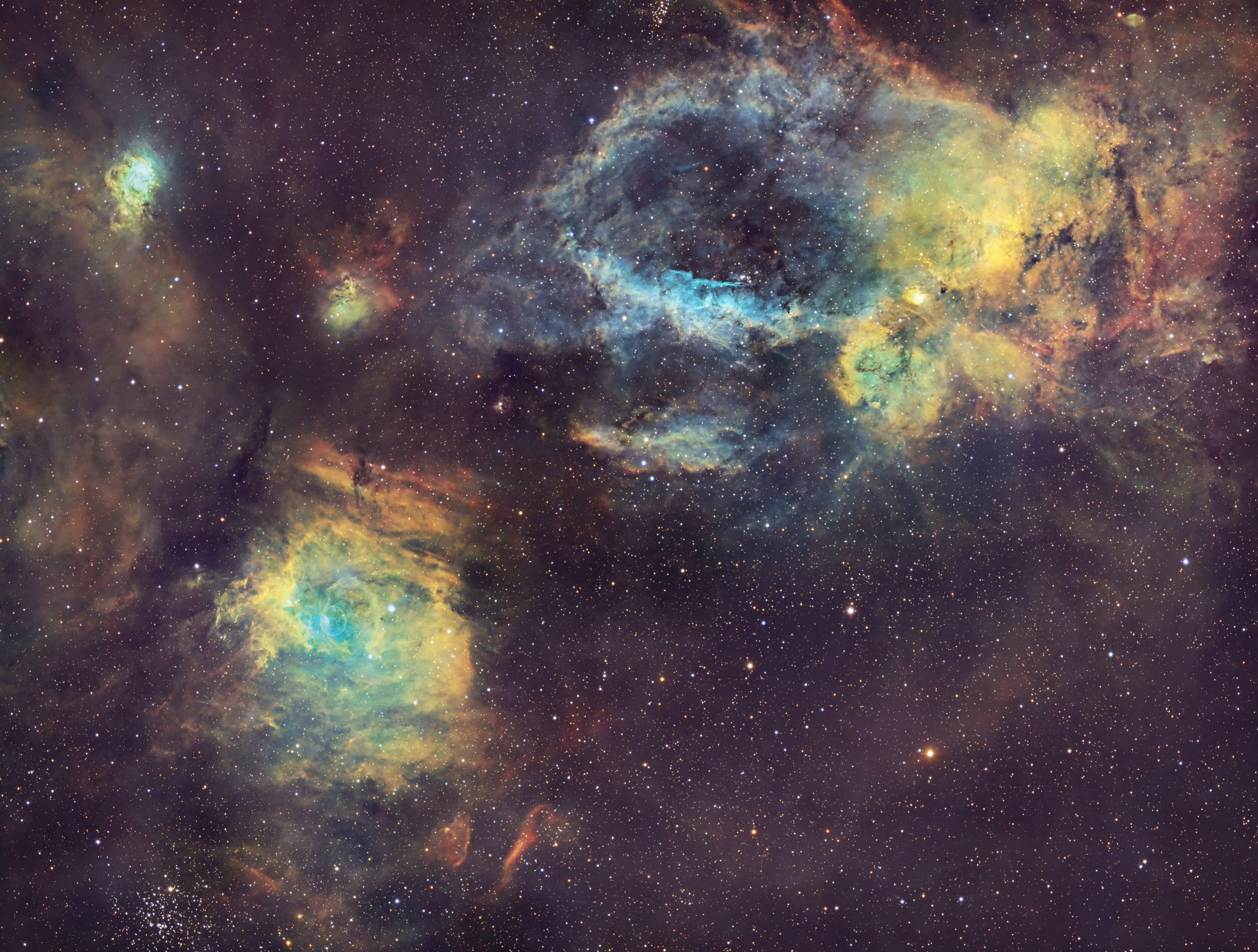 Emisné hmloviny NGC 7635, NGC 7538, NGC SH 2-157 a otvorená hviezdokopa M52 (foto: Robo Novotný)