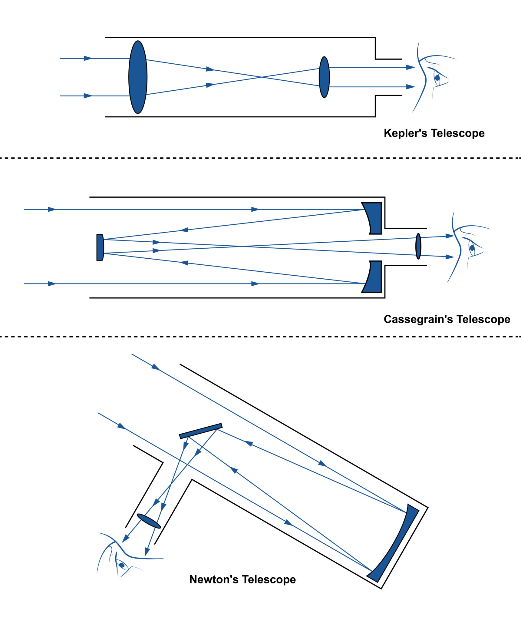 | Obr. 4 - Základné typy astronomických teleskopov |